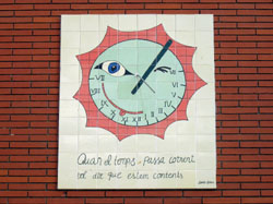 Forma Un sol dintre un rectangle Declinació 16º Oest Inclinació No Material Rajoles de ceràmica Xifres horaries Romanes, de VII del matí a VII de la tarda Línies zodiacals No Gnòmon Vareta metàlica Lema Quan el temps passa corrent vol dir que estem contents |